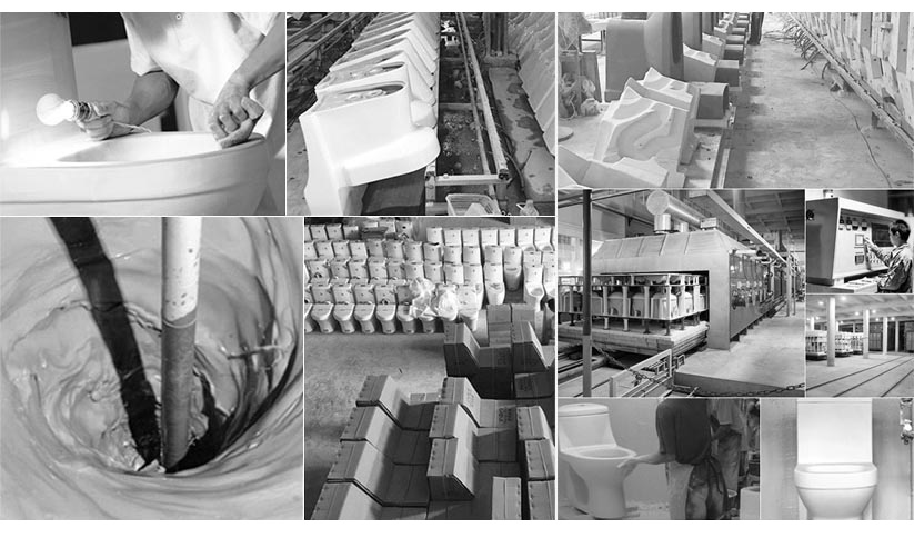 3、成型灌注 用浆料到石膏模中形成半成品还体。 每一件成型产品至少两块模型组合。 成型方法:单面吸浆、双面吸浆。 生产过程:注浆、放浆、脱模、拼接打孔、修还。